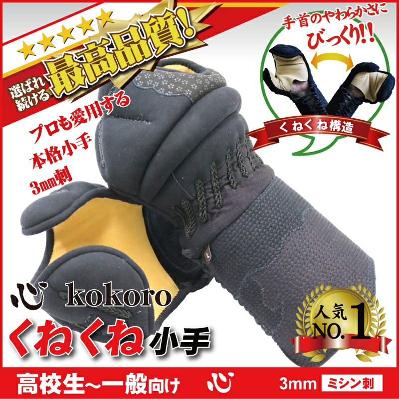 新品の小手は硬くて手首が痛いのは当たり前と思っていませんか?そのイメージ当店の『くねくね小手』がくつがえします。シリーズ販売実績9,532本以上の販売実績。防具の専門家が提案する本当に使いやす防具です。手首が柔らかく届いてすぐに手に馴染みます。思った構えにビシッと決まり、見た目もカッコイイ。今話題の大人気『くねくね小手』です。