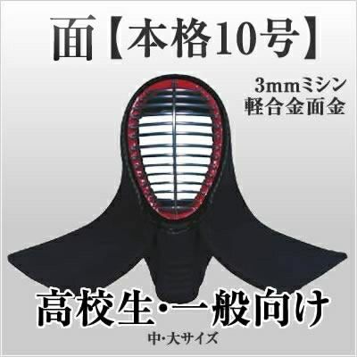 中・大サイズの剣道の面(高校生・一般向け!!) 【本格10号】 面のみ (3mmミシン・軽合金面金) 二重下付面乳革・面紐梅7尺付き