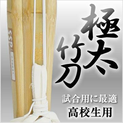 ●人気の胴張り先細タイプ『実戦型竹刀』の極太です。 通常の『実戦型竹刀』より手元重心ですので竹刀を振ったときに軽く感じます。 試合用や審査用などにオススメの竹刀です。